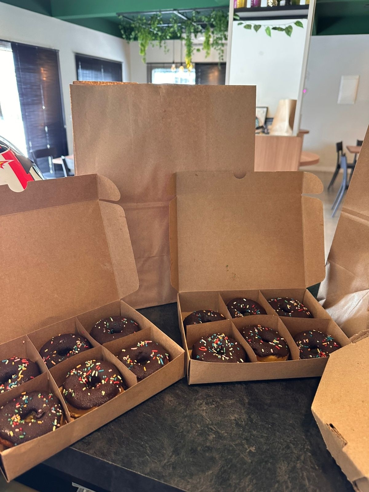 Chocodonuts (tem 5,5 g proteina, 85kcal sabor baunilha com pedacinhos de chocolate e banho de chocolate 70% - 6 Unid